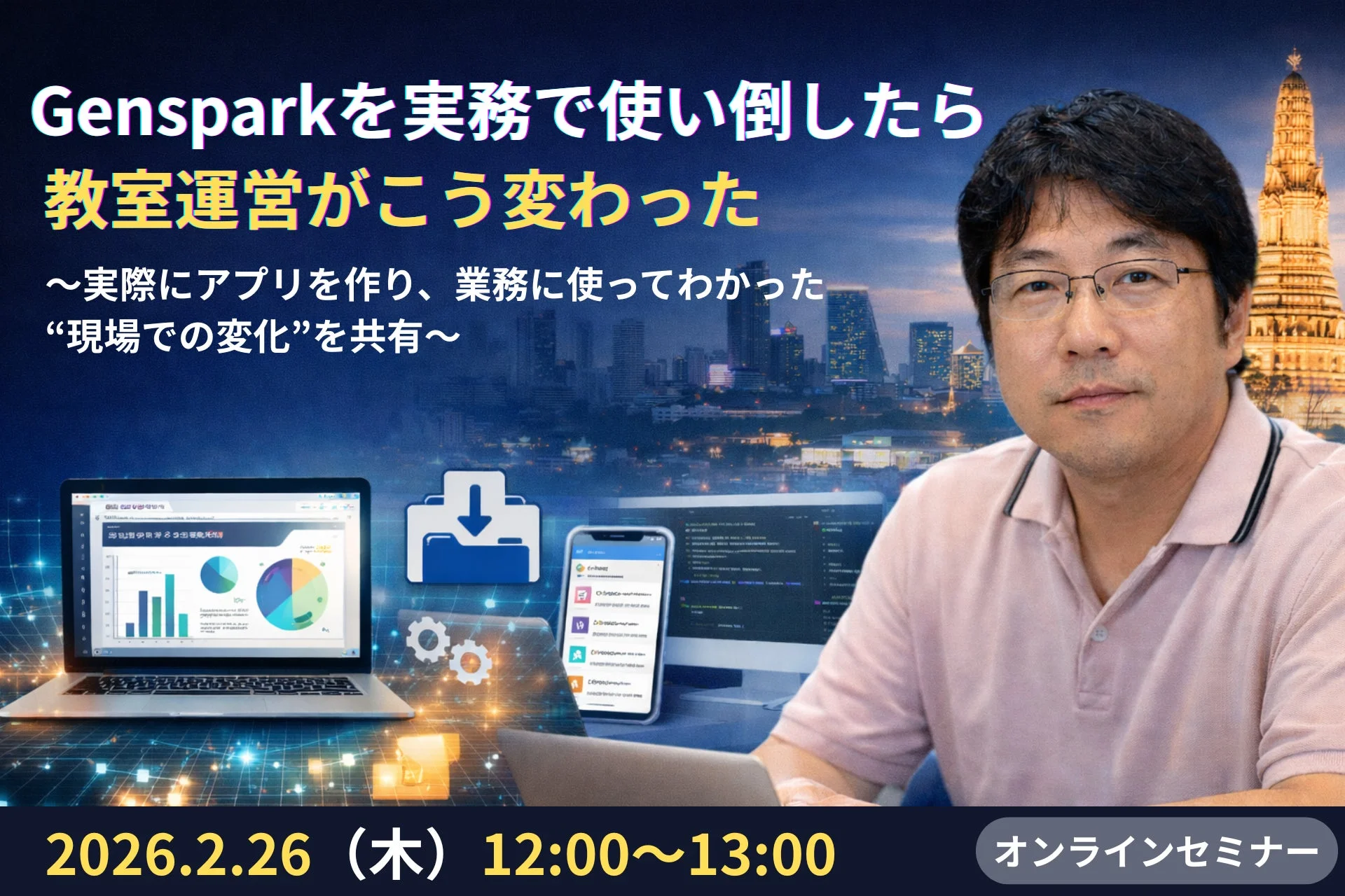 実際に、タイ・バンコクで「AI&プログラミングのKOBEYA」を運営する鈴木政路氏は、Gensparkを実務で使い倒すことで、教室運営を劇的に変化させました。この事例から、副業初心者がAIを活用してどのように仕事を変えられるのか、具体的なヒントが見えてきます。