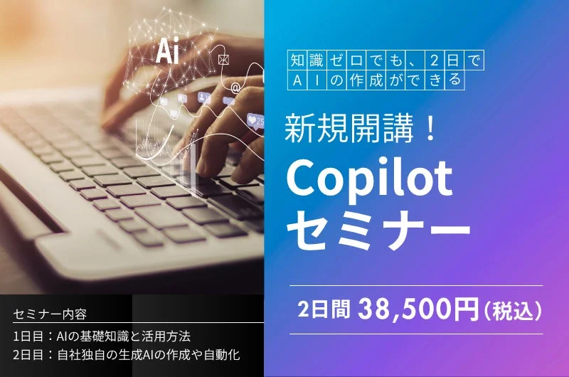 AI知識ゼロでも2日でAI作成ができるCopilotセミナーの案内