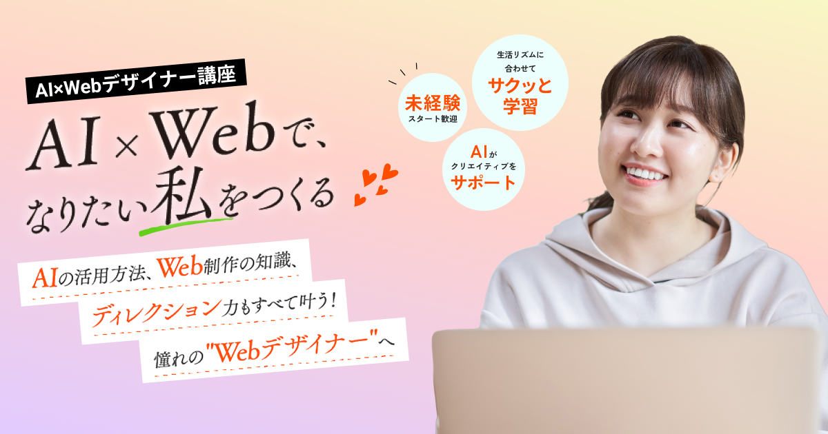 AI×Webデザイナー講座|資格スクール ヒューマンアカデミー未経験からWebデザイナーを目指すならAI活用が鍵。デザイン・UI設計・コーディング・企画力まで、AIを活用しながら実務レベルのWeb制作スキルを身につけられる講座です。個別サポート&キャリア支援付き。