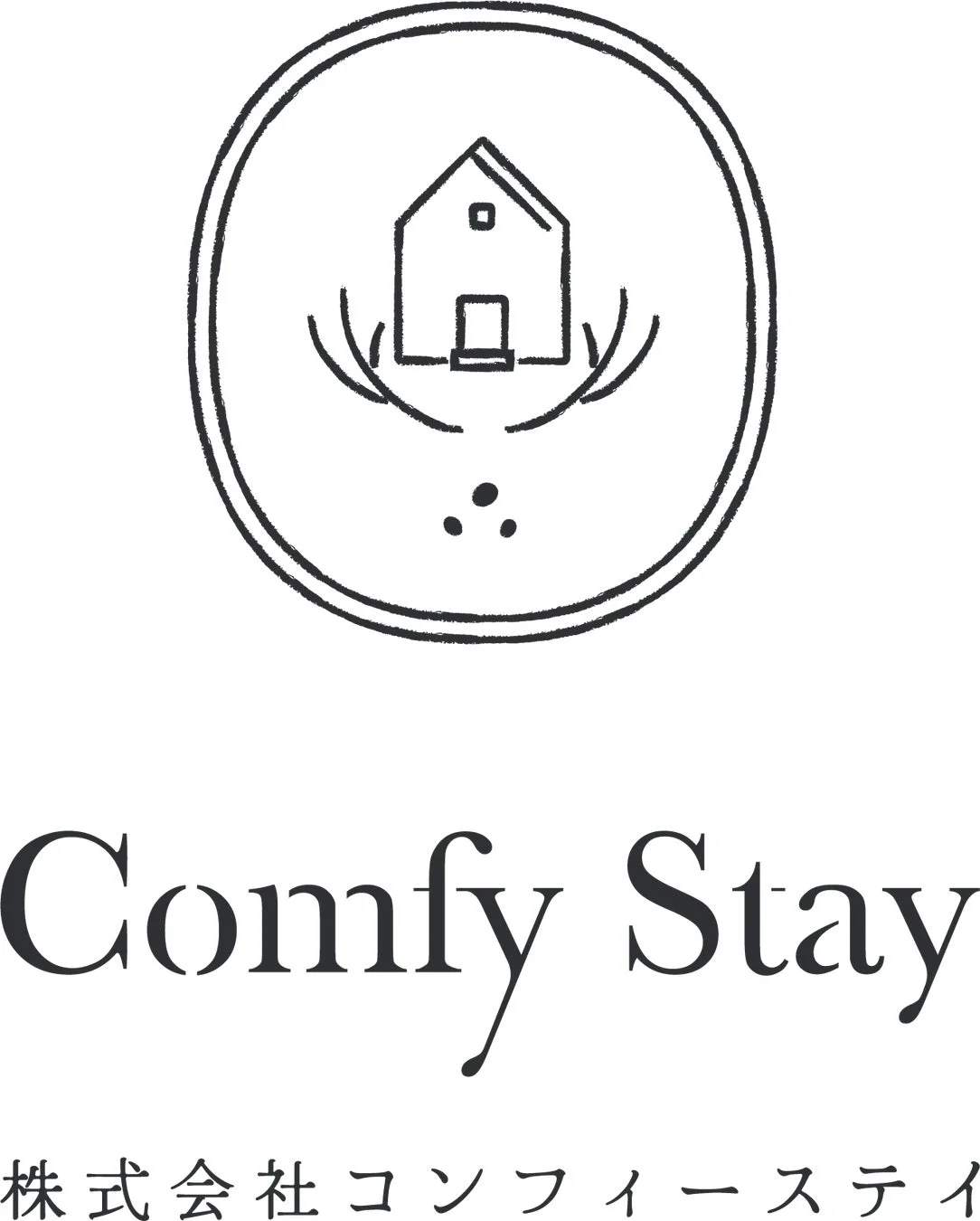 この「家」は、旅先でありながらも「住むように暮らせる」安心感と心地よさを象徴しています。また、上へと伸びる鹿の角は事業の無限の広がりを、縁起の良い鹿の子模様はゲストの心に長く残る「良い印象」を願うものです。このロゴは、コンフィーステイが提供する価値と、未来への成長意欲を視覚的に表現しています。