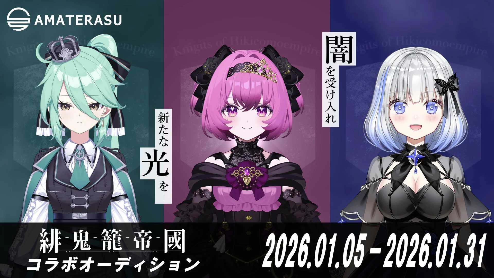 VTuber事務所AMATERASUと、広島を拠点に活動するアイドルユニット緋鬼籠帝國が、ひきこもり経験者を対象としたコラボオーディション「Hyderange∀」を2026年1月5日より開催しています。このオーディションは、一般的なVTuberオーディションとは一線を画し、「闇を受け入れ、新たな光を――」というコンセプトのもと、ひきこもりという経験をプラスに転換し、VTuberとして輝ける仲間を募集するものです。