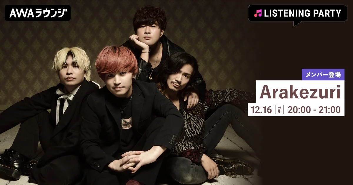 今回のリスニングパーティーでは、ArakezuriのメンバーがAWAラウンジに登場し、ニュー・アルバム『ENSEMBLE』の楽曲はもちろん、これまでの人気曲もオンエアされます。メンバーはチャットと音声ライブ配信で参加し、楽曲へのコメントやファンとのリアルタイムな交流が予定されています。