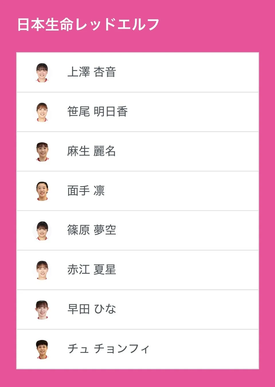 上澤 杏音、笹尾 明日香、麻生 麗名、面手 涼、篠原 夢空、赤江 夏星、早田 ひな、チュ チョンフィ