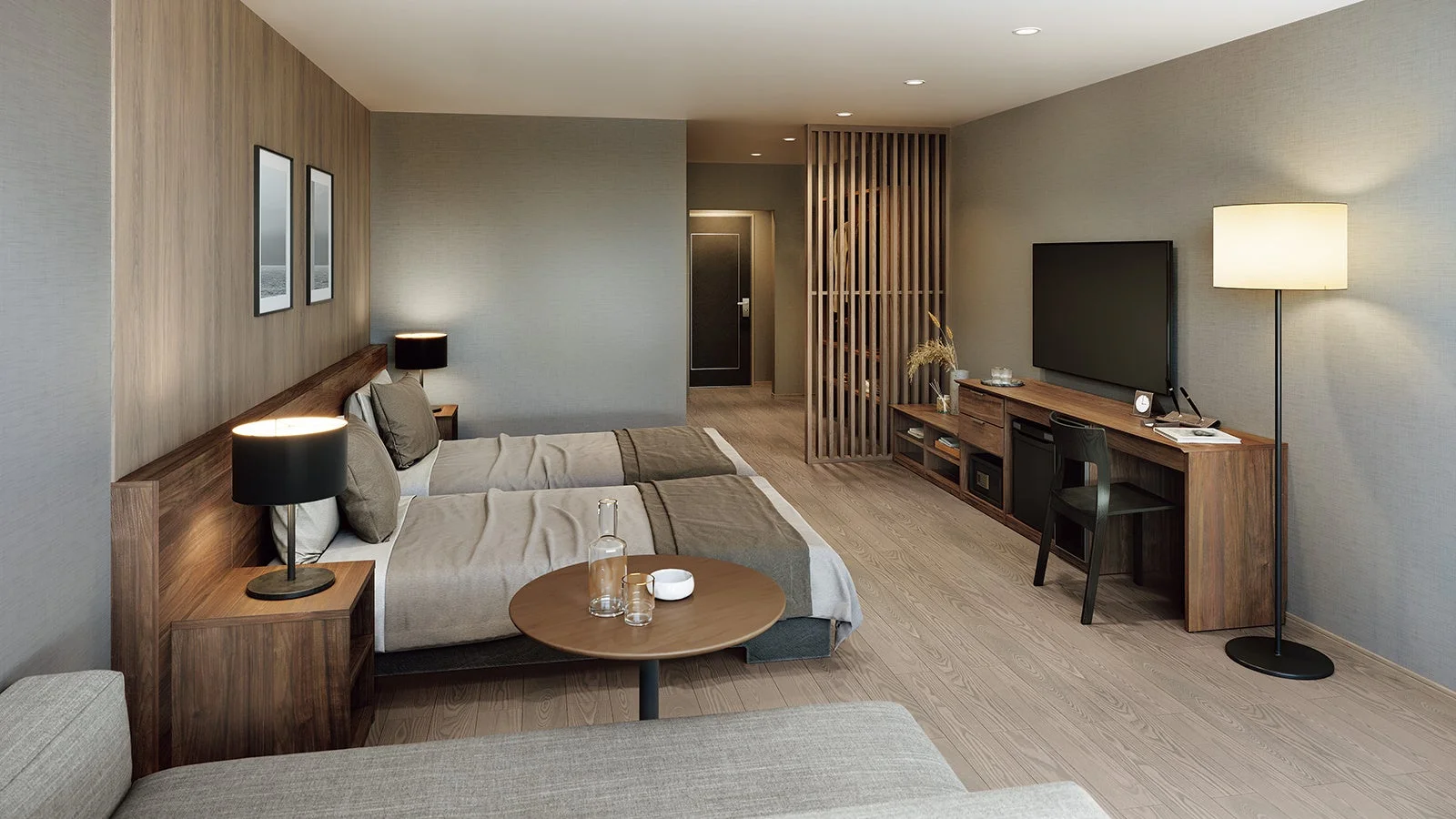 しかし、ホテル客室という特殊な空間では、不特定多数のお客様が利用することを前提とした高い耐久性や、階下への騒音を防ぐための優れた防音性能など、一般的な木質床材では満たしにくい品質が求められていました。特に、海外からの観光客が増加する中で、土足で利用されることも多く、より頑丈な床材が求められる傾向にあります。