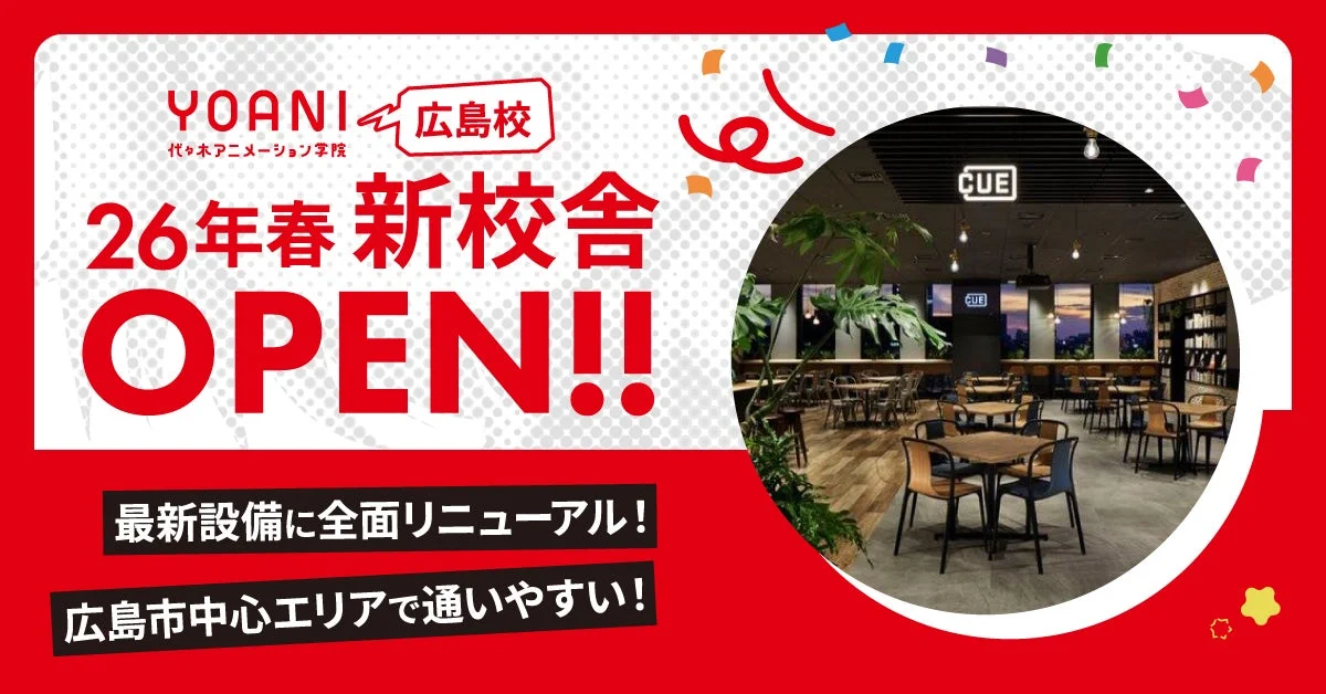 夢を追いかけるあなたへ。エンタメ業界で活躍したいという情熱を持つ多くの若者が集まる代々木アニメーション学院 広島校が、2026年春、いよいよ新校舎へ拡張移転し、全面的にリニューアルします。この移転は、学生数の増加と、ますます高度化するエンタメ業界のニーズに応えるための大きな一歩です。